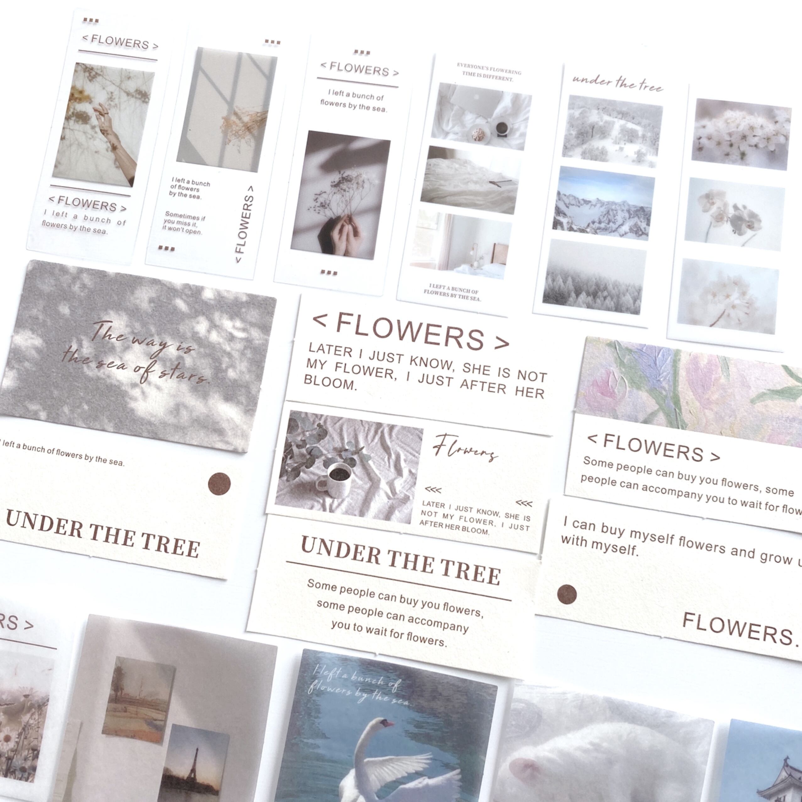 コラージュ素材 50枚入 ステッカー&紙素材 *FLOWERS (brown)* [C010]