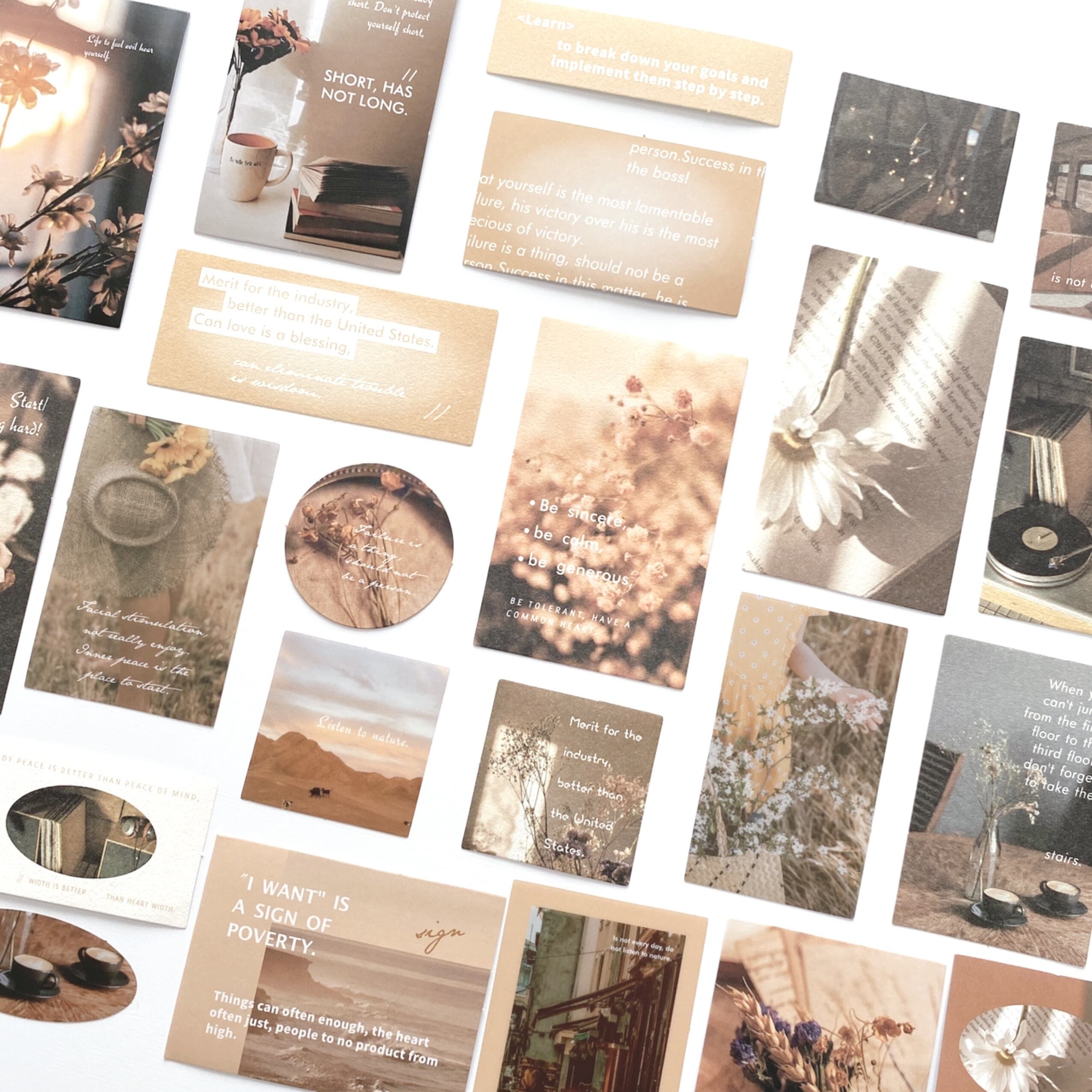 コラージュ素材 50枚入 ステッカー&素材紙 *brown* [C029]